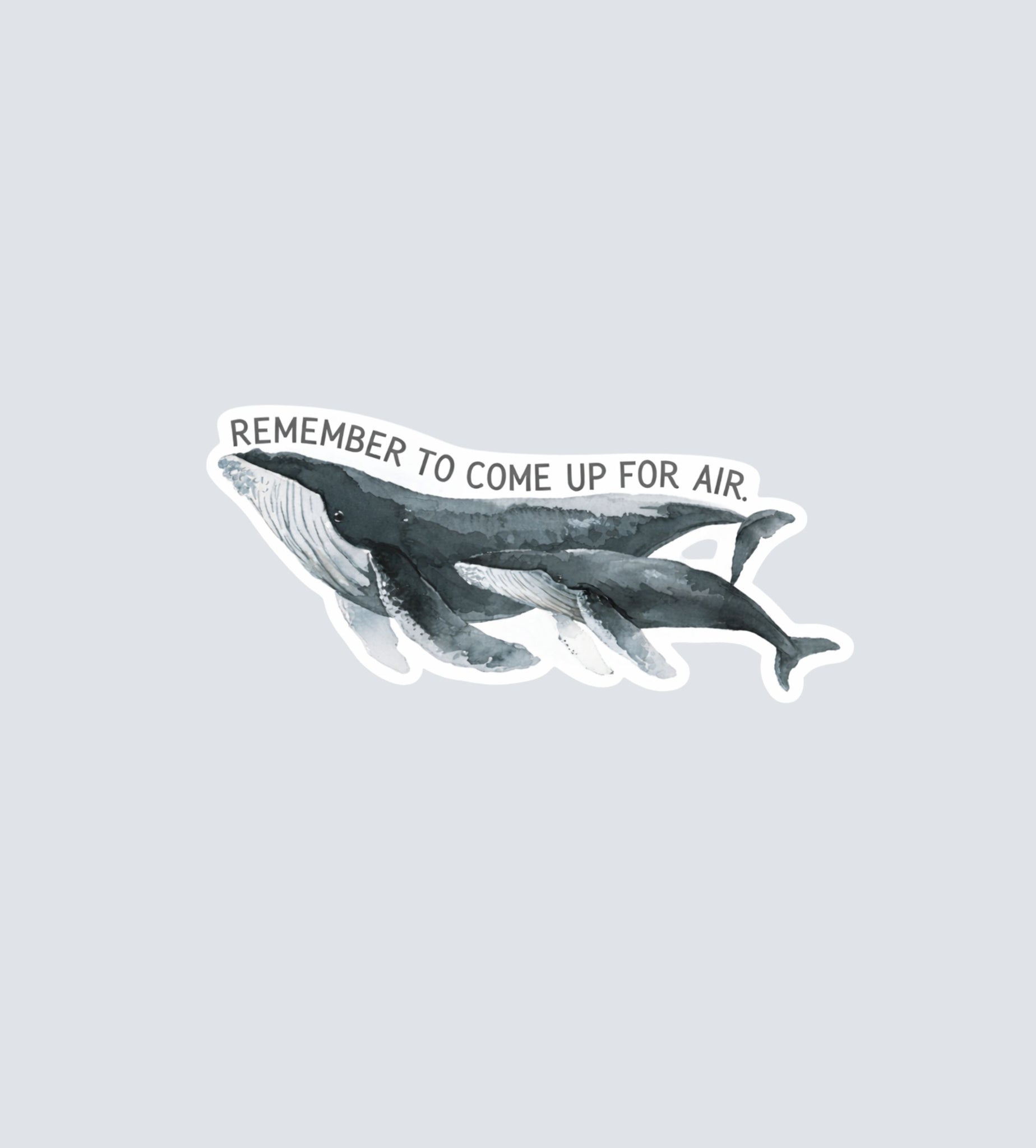 Created for National Child Protection Week 2023 by The Centre for Women & Co.’s Children & Youth Counselling Team, this calming sticker features the quote “Remember to come up for air” alongside a gentle illustration of a mother whale and her calf.